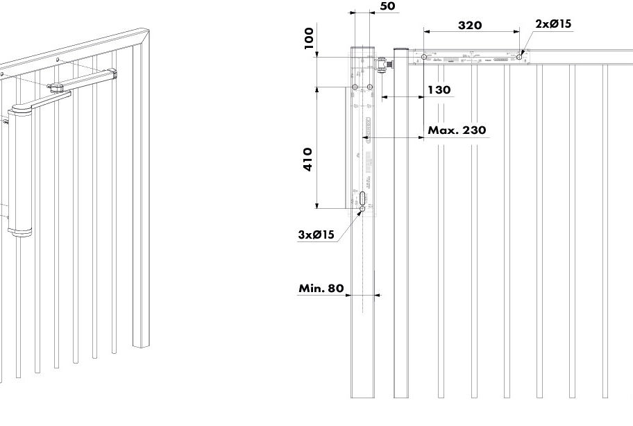 - For pedestrian gates up to 1400 mm wide and 100 kg